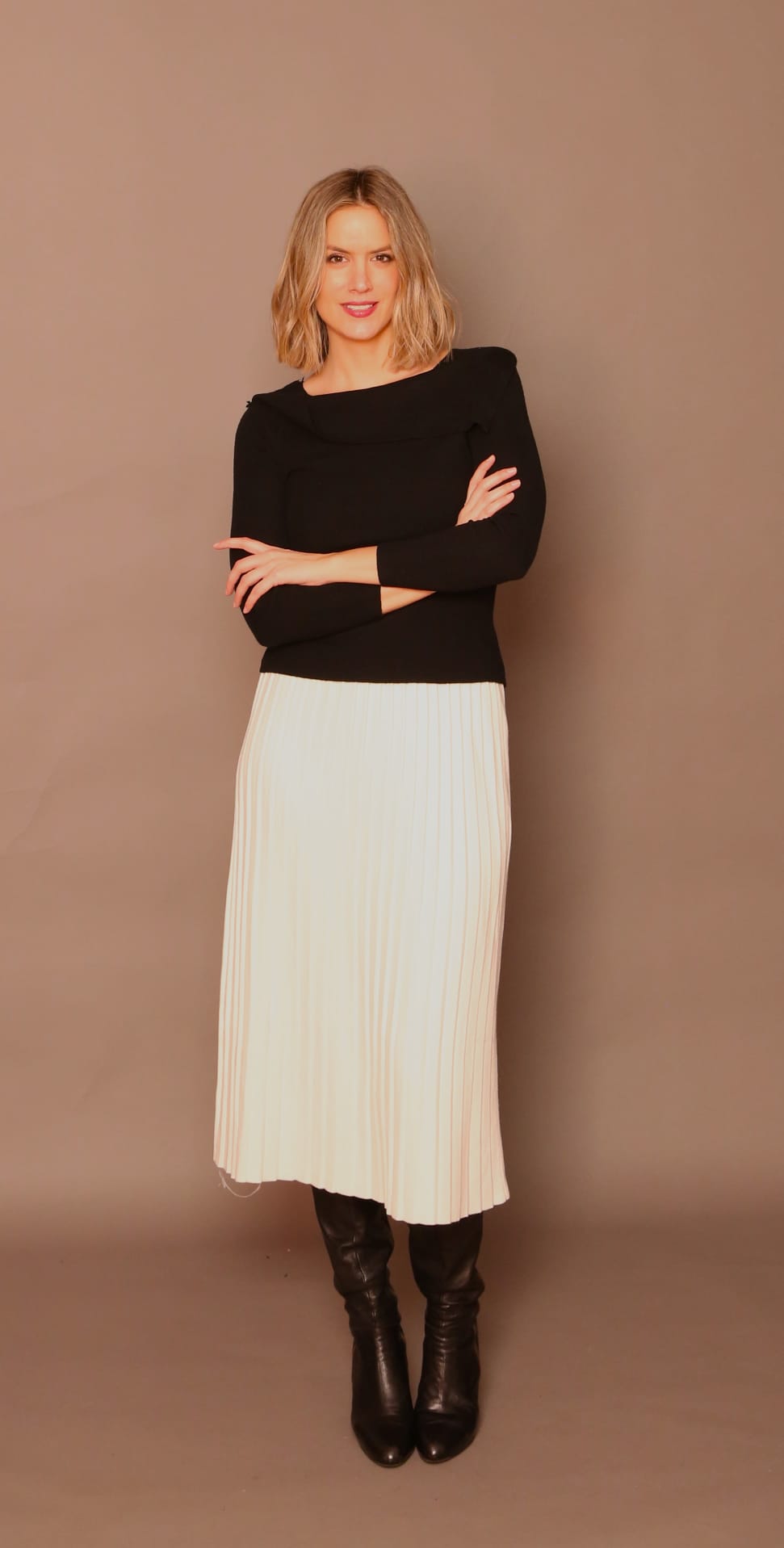 Falda pliegues, cinturón crudo