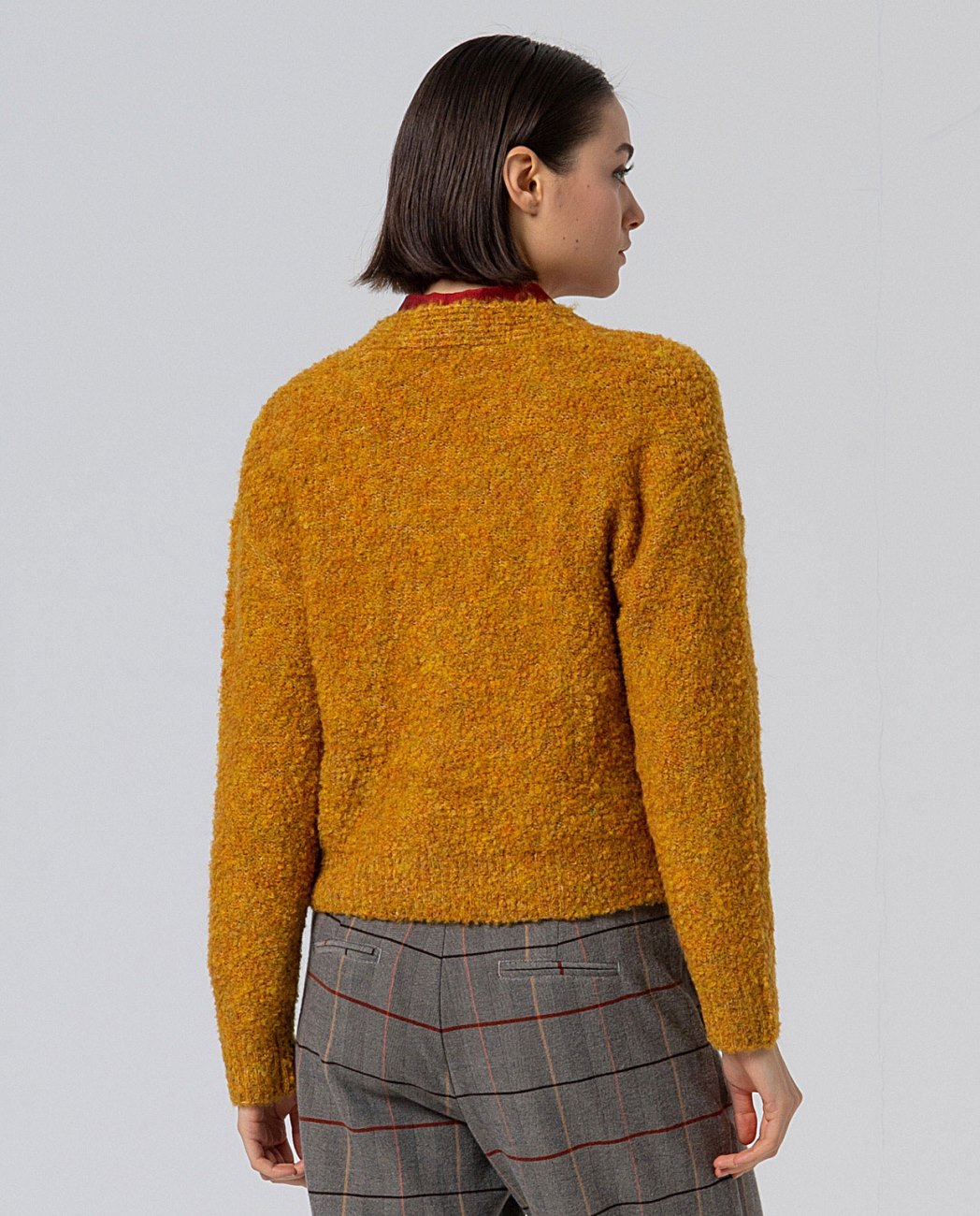 Cardigan cuello pico Mostaza