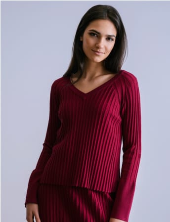 Jersey canalé detalle puño, buganvilla