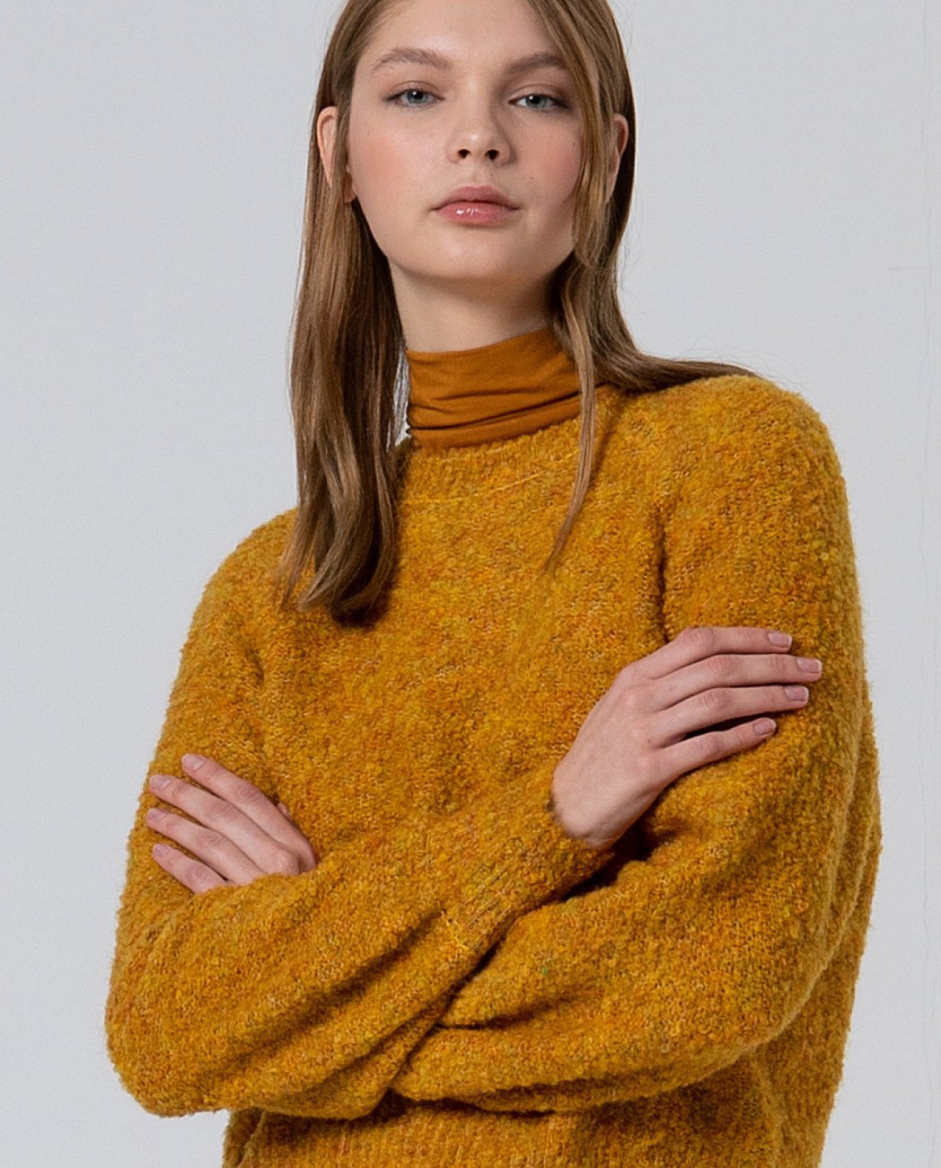 Jersey cuello redondo, manga ranglán abullonada Mostaza