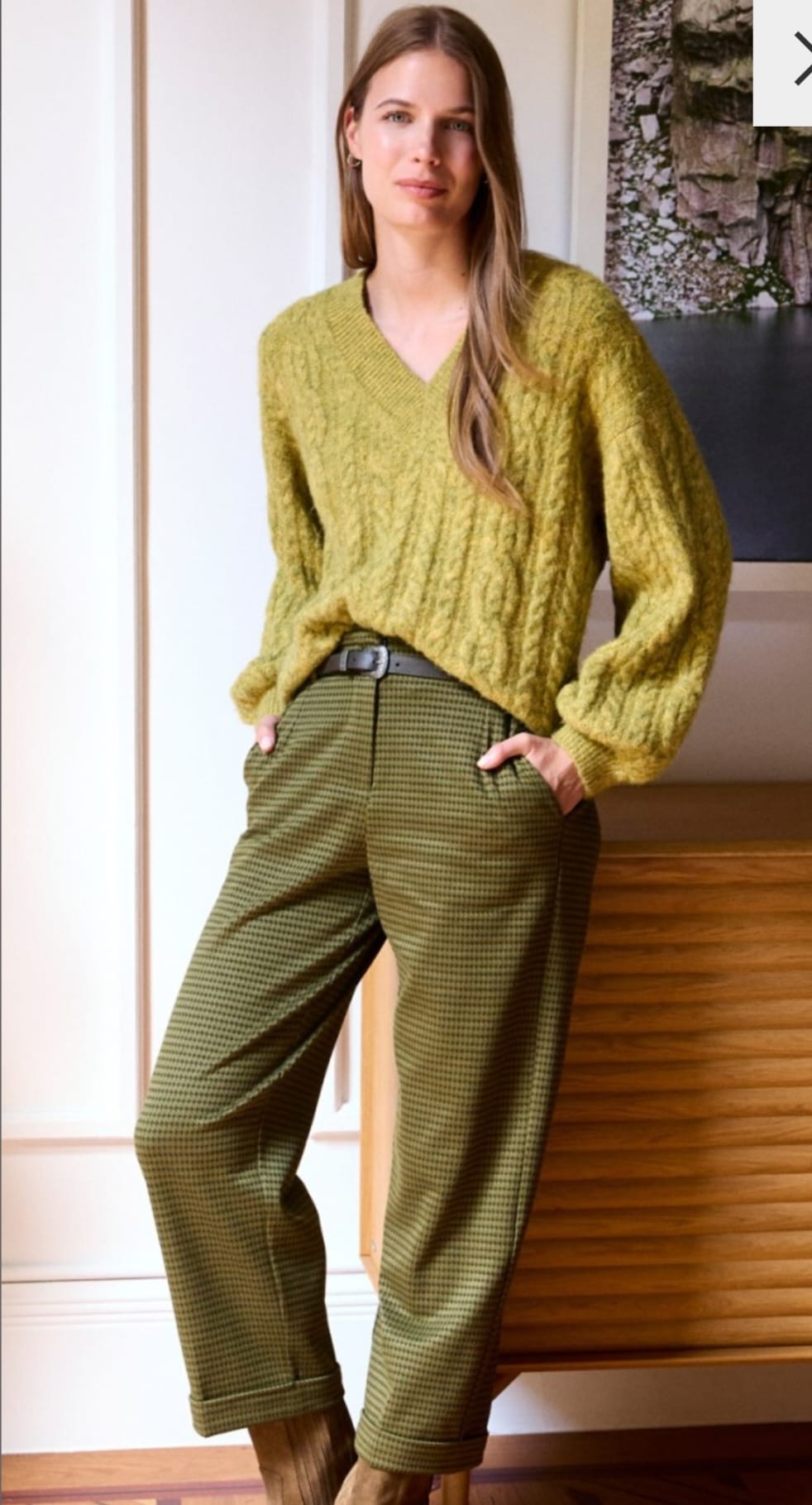 Pregunta sobre Pantalones rectos en pata de gallo. Verde