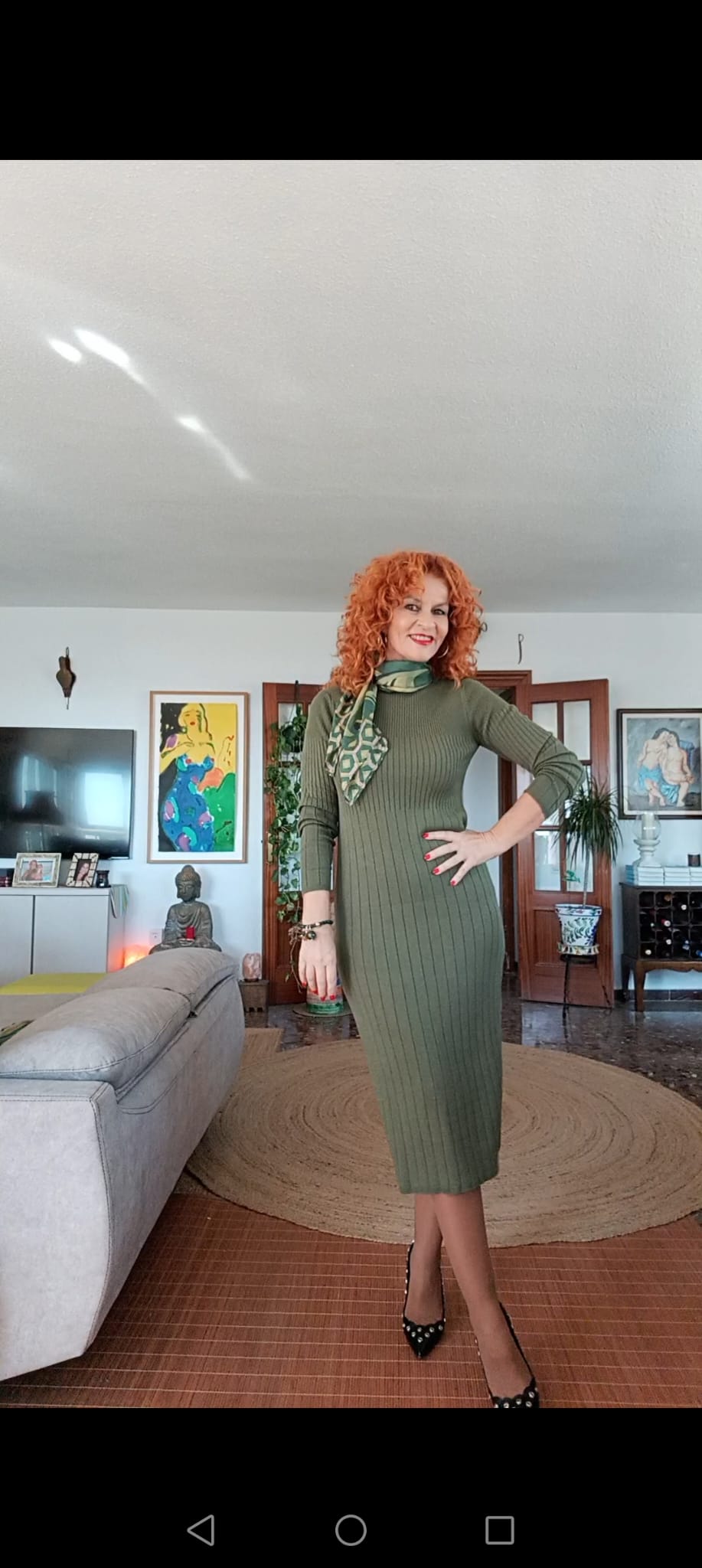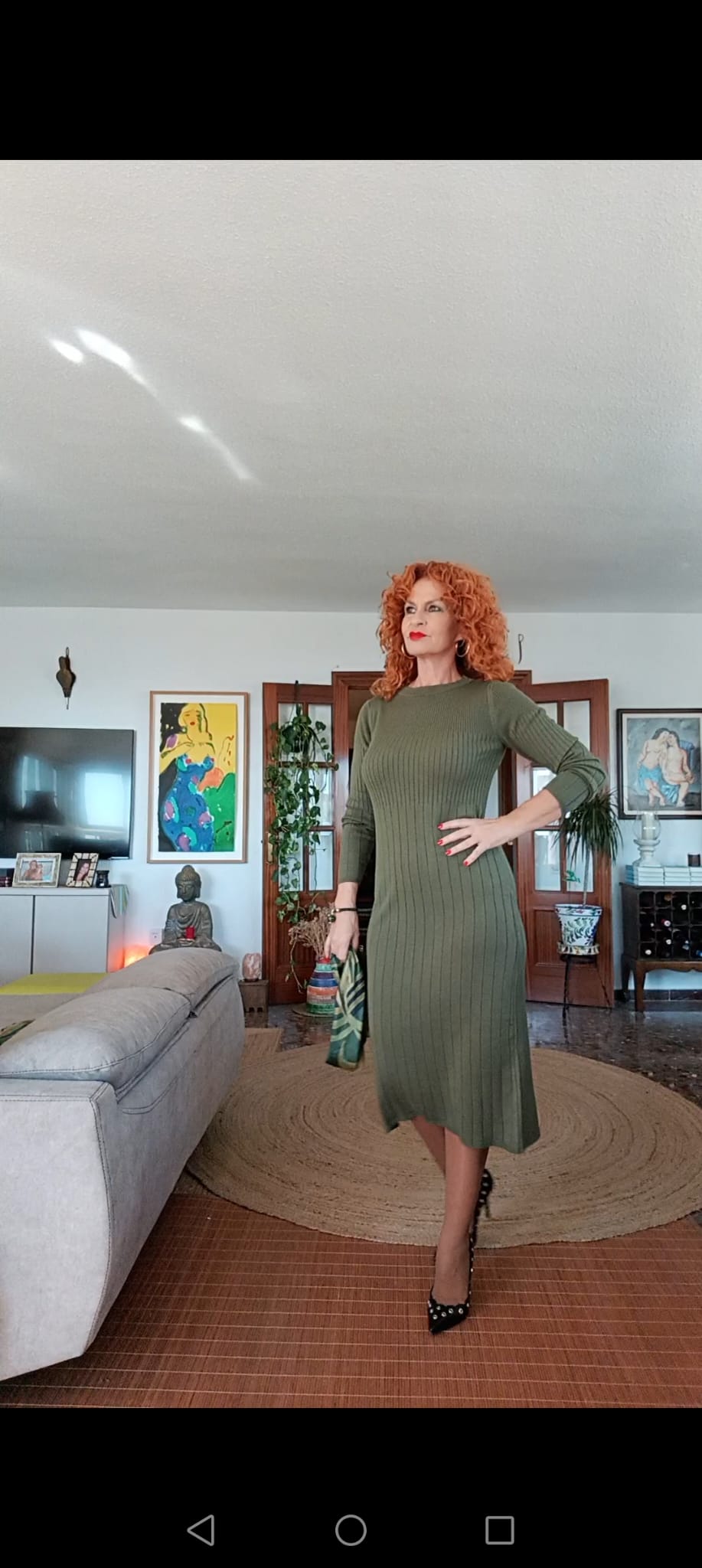 Vestido canalé kaki