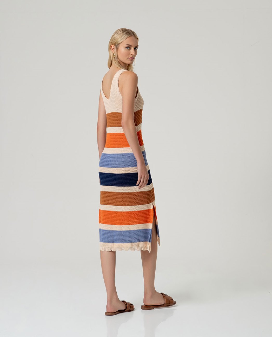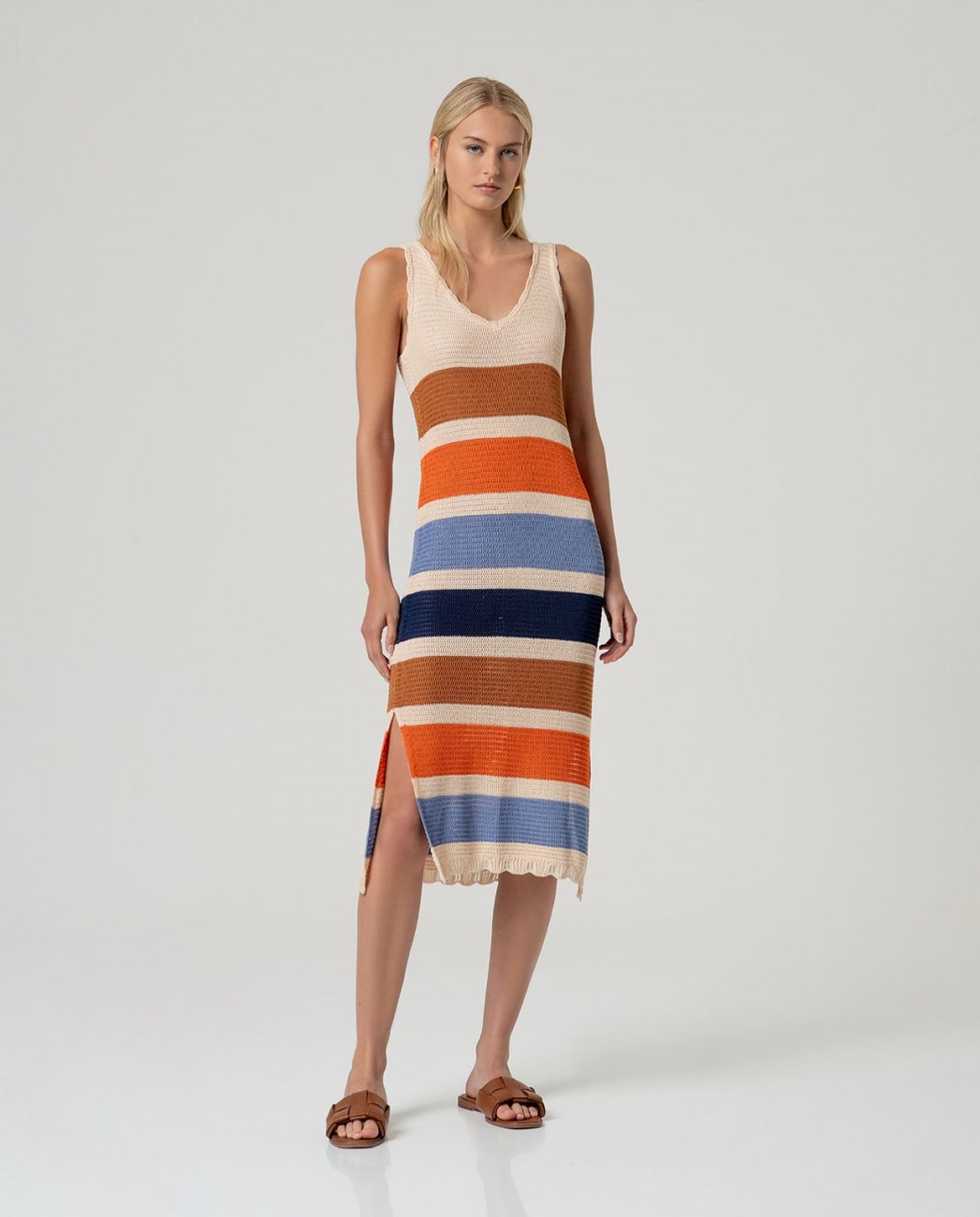 Vestido escote pico largo listado